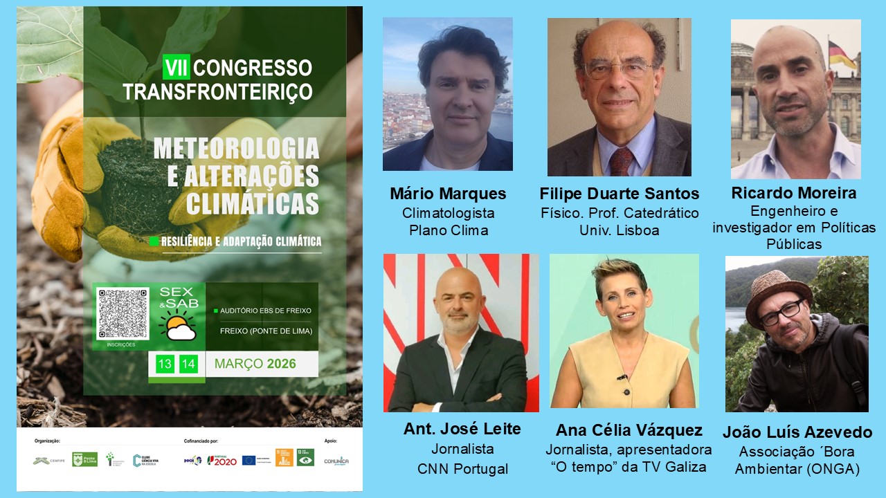 O Congresso Transfronteiriço de Meteorologia e Alterações Climáticas vai para a sua sétima edição, este ano a realizar durante os dias 13 e 14 de março, na localidade de Freixo (Ponte de Lima). A longevidade deste evento é o reconhecimento de uma temática cada vez mais na ordem do dia, estando previstos mais de 200 participantes. Numa organização conjunta do município de Ponte de Lima, CENFIPE, e Agrupamento de Escolas de Freixo, serão dois dias para ouvir diferentes especialistas de Portugal e Galiza, abordando a temática da meteorologia, impactos climáticos e estratégias de adaptação como o ordenamento territorial.