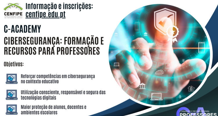 O Centro de Formação e Inovação dos Profissionais de Educação - Escolas Associadas do Vale do Lima e Paredes de Coura (CENFIPE) irá dinamizar o curso de formação em regime de e-learning, com a duração de 25 horas, “C-Academy – Cibersegurança: Formação e Recursos para Professores” (inscrições), desenvolvido pelo Centro Nacional de Cibersegurança.