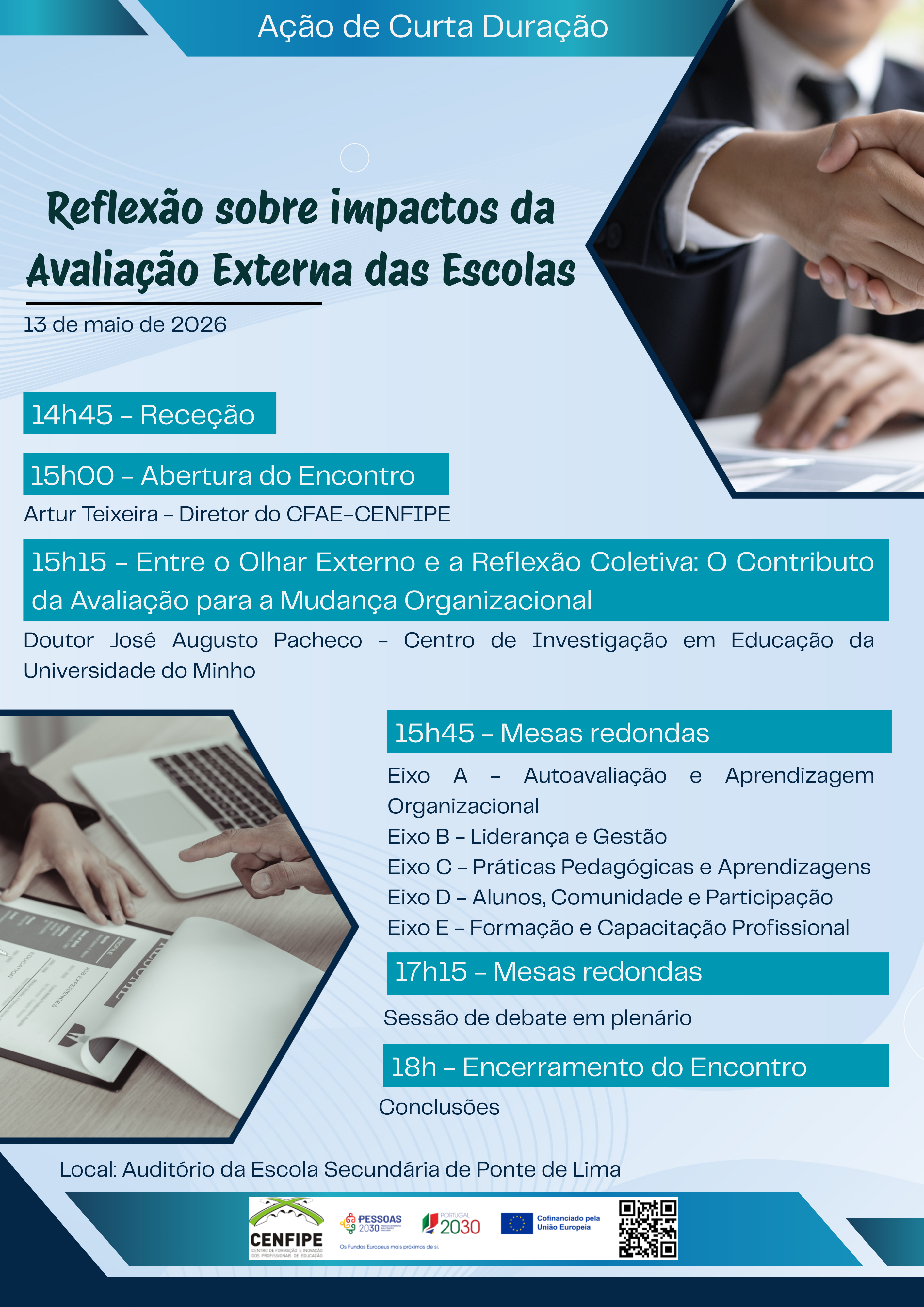 Em 2026, Portugal assinala o marco histórico de duas décadas de Avaliação Externa das Escolas (AEE), um período (2006-2026) em que esta política pública se consolidou como um instrumento estruturante para a melhoria do sistema educativo. Para celebrar esta efeméride, o CENFIPE, em parceria com a Inspeção-Geral da Educação e Ciência (IGEC), promove uma Ação de Curta Duração (ACD) centrada na análise analítica do impacto deste processo nas organizações educativas.
